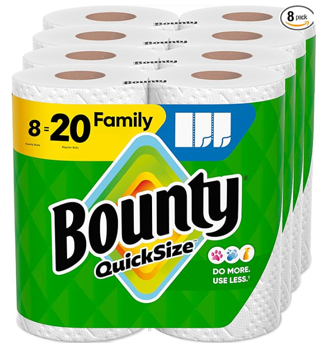 - Pack contains 8 Family Rolls of Bounty white Quick Size Paper Towels