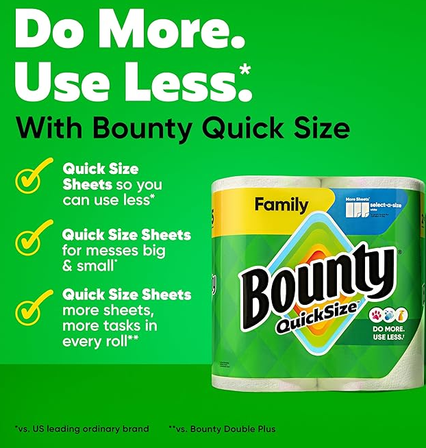 - More Sheets, More Tasks in Every Roll* *vs. Bounty Double Plus