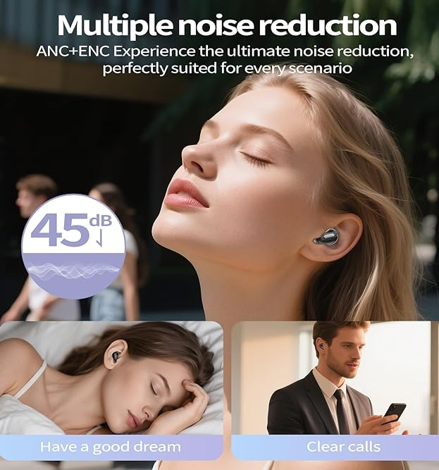 - ANC for Deep Uninterrupted Sleep: Equipped with Active Noise Cancellation (ANC), the D20 earbuds noise cancelling effectively block out snoring, noisy roommates, or street sounds. Whether you’re at home, on a plane, or in a loud hotel, these earbuds create a personal “sound cocoon” for restful sleep, focused meditation, or deep relaxation—anytime, anywhere.